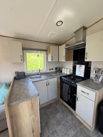 Caravan. This mobile home features 2 bedrooms, a seating area with a sofa and 1 bathroom with a shower. The well-equipped kitchen has a stovetop, a refrigerator, kitchenware and an oven. The mobile home features a flat-screen TV, a dining area, a wardrobe, an electric kettle as well as garden views. The unit has 3 beds.