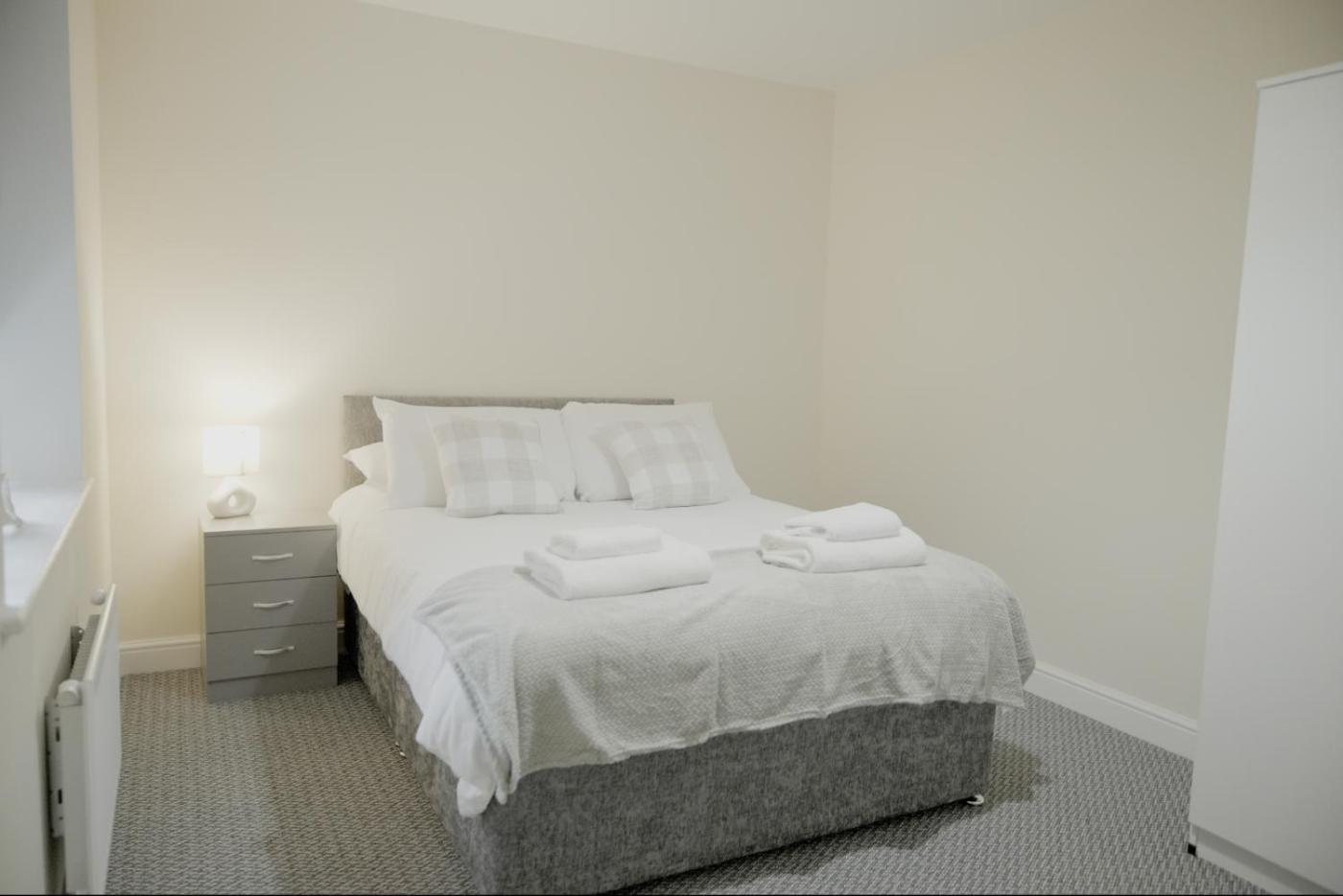 Two-Bedroom Apartment. This apartment features 2 bedrooms, a kitchen and 1 bathroom with a bath and a shower. Guests can make meals in the kitchen that has a stovetop, a refrigerator, an oven and a microwave. The apartment features a washing machine, a tea and coffee maker, a wardrobe, a sofa and a flat-screen TV with streaming services. The unit has 2 beds.