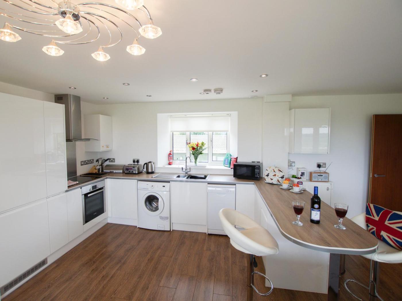 The spacious apartment features 3 bedrooms, a TV, a fully equipped kitchen with a dishwasher and an oven, a washing machine, and 3 bathrooms with a walk-in shower. Providing free private parking, this 5-star apartment also features free WiFi. There is also a seating area and a fireplace.