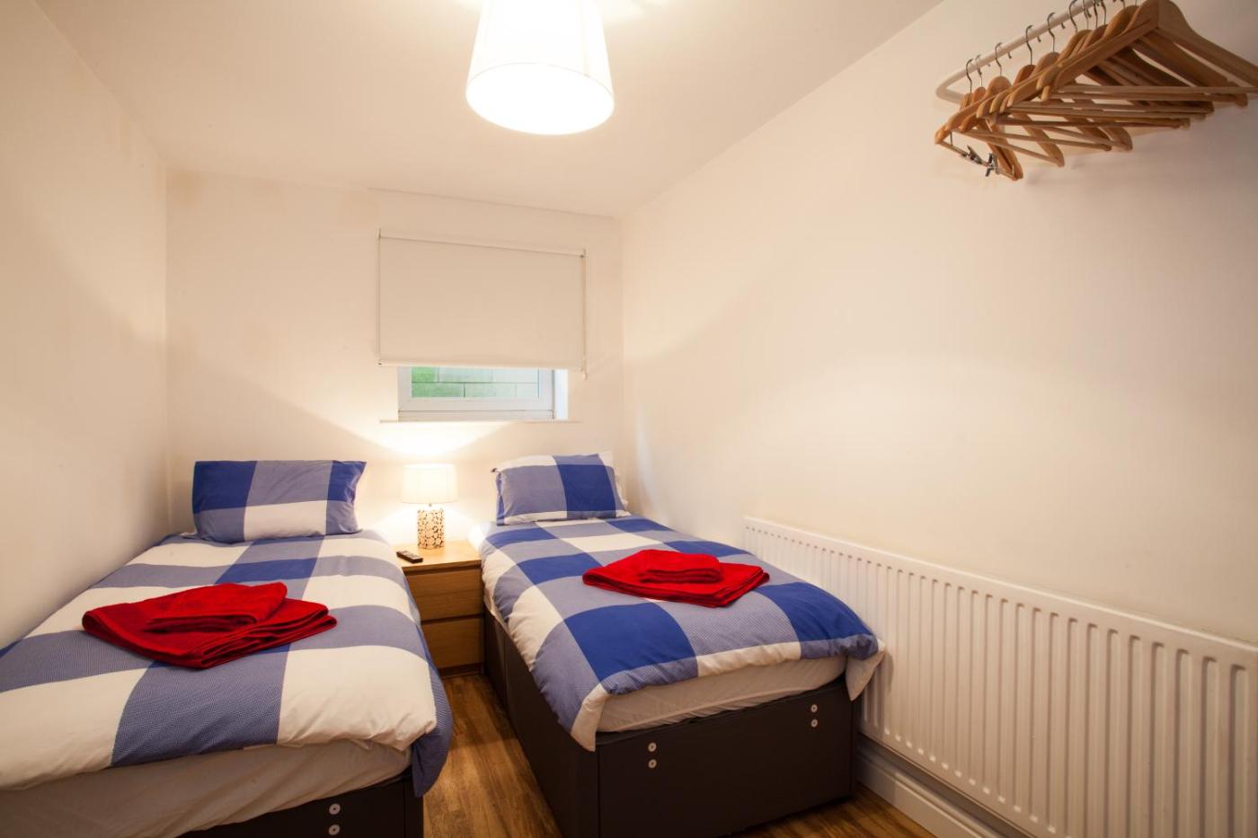Superior Four-Bedroom Apartment. This apartment includes 4 double bedrooms each with Smart TVs, 2 bathrooms and a large patio garden with outside barbecue and seating area. Additional features include free WiFi, a flat-screen Virgin cable TV, dining area and a fully equipped kitchen including dishwasher and washing machine. There are 10 single beds which can be converted4 doubles and 2 singles or a combination of single or doubles if requested at time of booking. ;
