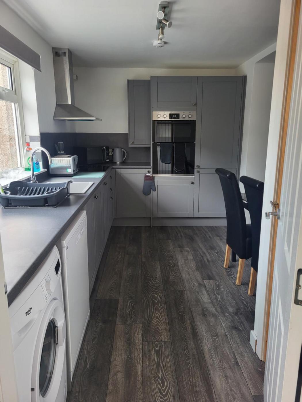 Two-Bedroom House. Featuring a private entrance, this holiday home is comprised of 1 living room, 2 separate bedrooms and 1 bathroom with a shower and a hairdryer. The well-equipped kitchen features a refrigerator, a dishwasher, kitchenware and an oven. The holiday home offers a washing machine, a wardrobe, an electric kettle, a flat-screen TV, as well as garden views. The unit offers 3 beds and 1 futon.