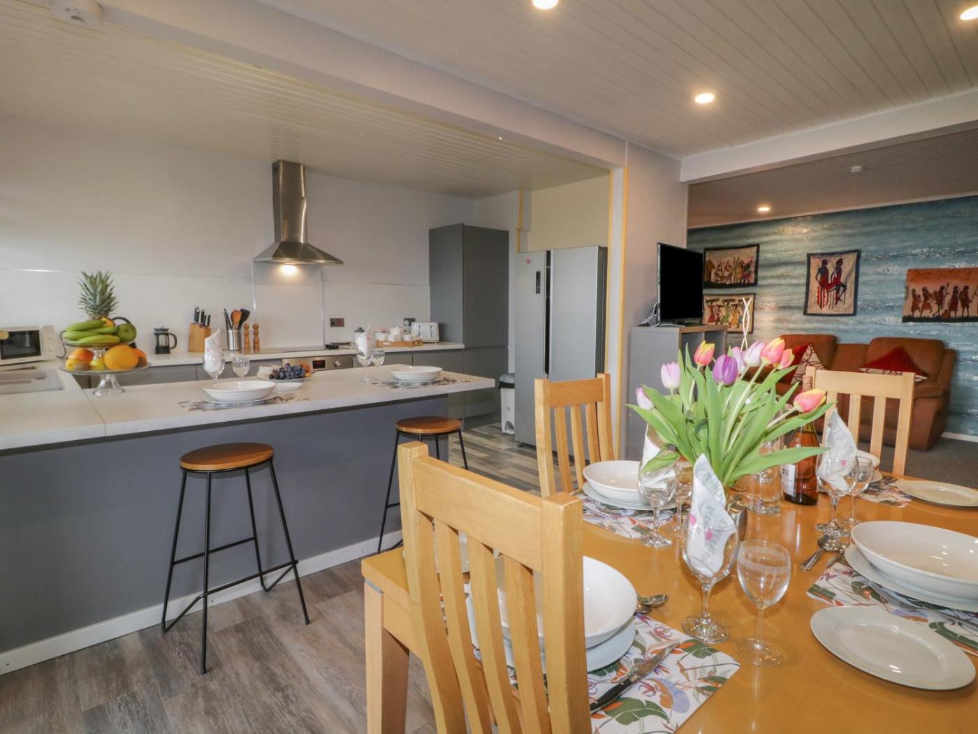 Holiday Home. This spacious holiday home comes with 3 bedrooms, a seating area with a sofa and 1 bathroom with a walk-in shower. The well-equipped kitchen has a stovetop, a refrigerator, an oven and a microwave. The holiday home features a TV, a washing machine, a dining area, a wardrobe as well as sea views. The unit has 4 beds.