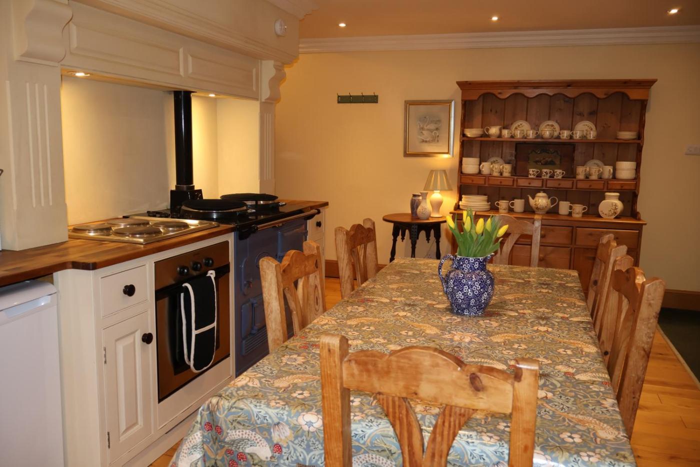 Two-Bedroom House. This holiday homes special feature is the hot tub. This holiday home comprises 1 bedroom, a kitchen and 1 bathroom with a bath and a shower. The holiday homes kitchen, which features a refrigerator and a microwave, is available for cooking and storing food. The holiday home provides a dining area, a wardrobe, an electric kettle, a flat-screen TV, as well as river views. The unit offers 4 beds. ;