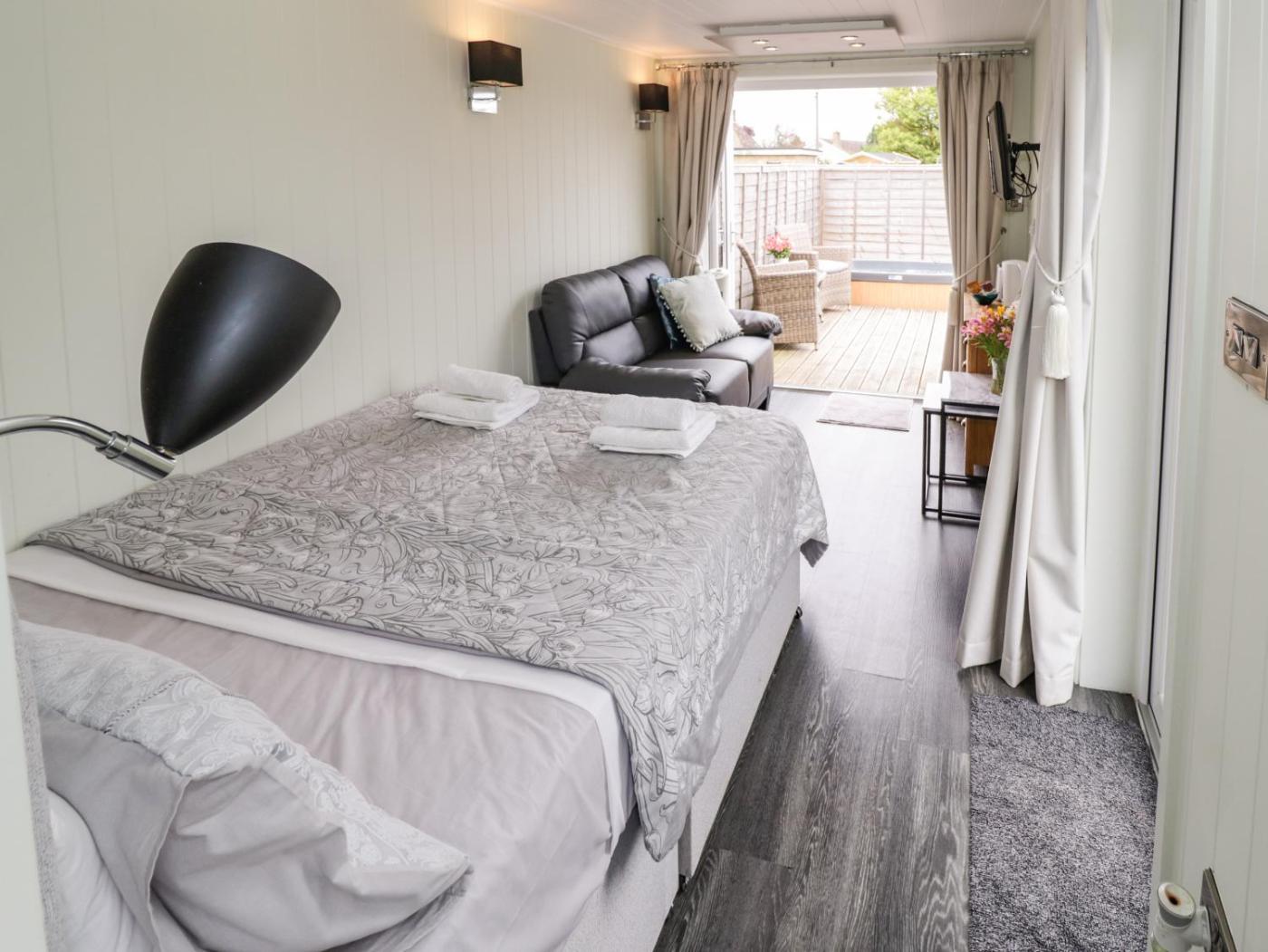 Holiday Home. This holiday home offers a hot tub. This holiday home comprises 1 bedroom, a seating area with a sofa and 1 bathroom with a shower. Meals can be prepared in the kitchen, which comes with a stovetop, a refrigerator, a microwave and a toaster. The holiday home provides a coffee machine, a dining area, a wardrobe, heating and a TV. The unit offers 1 bed.
