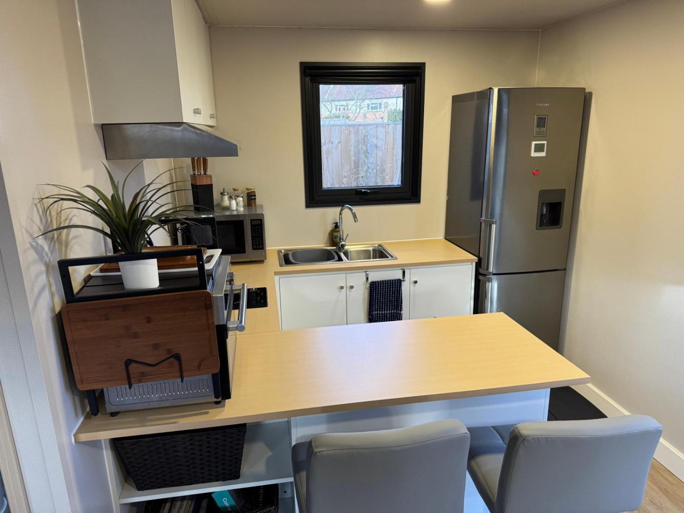 Two-Bedroom Apartment. The well-fitted kitchen features a stovetop, a refrigerator, kitchenware and a microwave. The apartment provides a flat-screen TV with streaming services, a private entrance, a seating area, a dining area as well as garden views. The unit offers 1 bed.