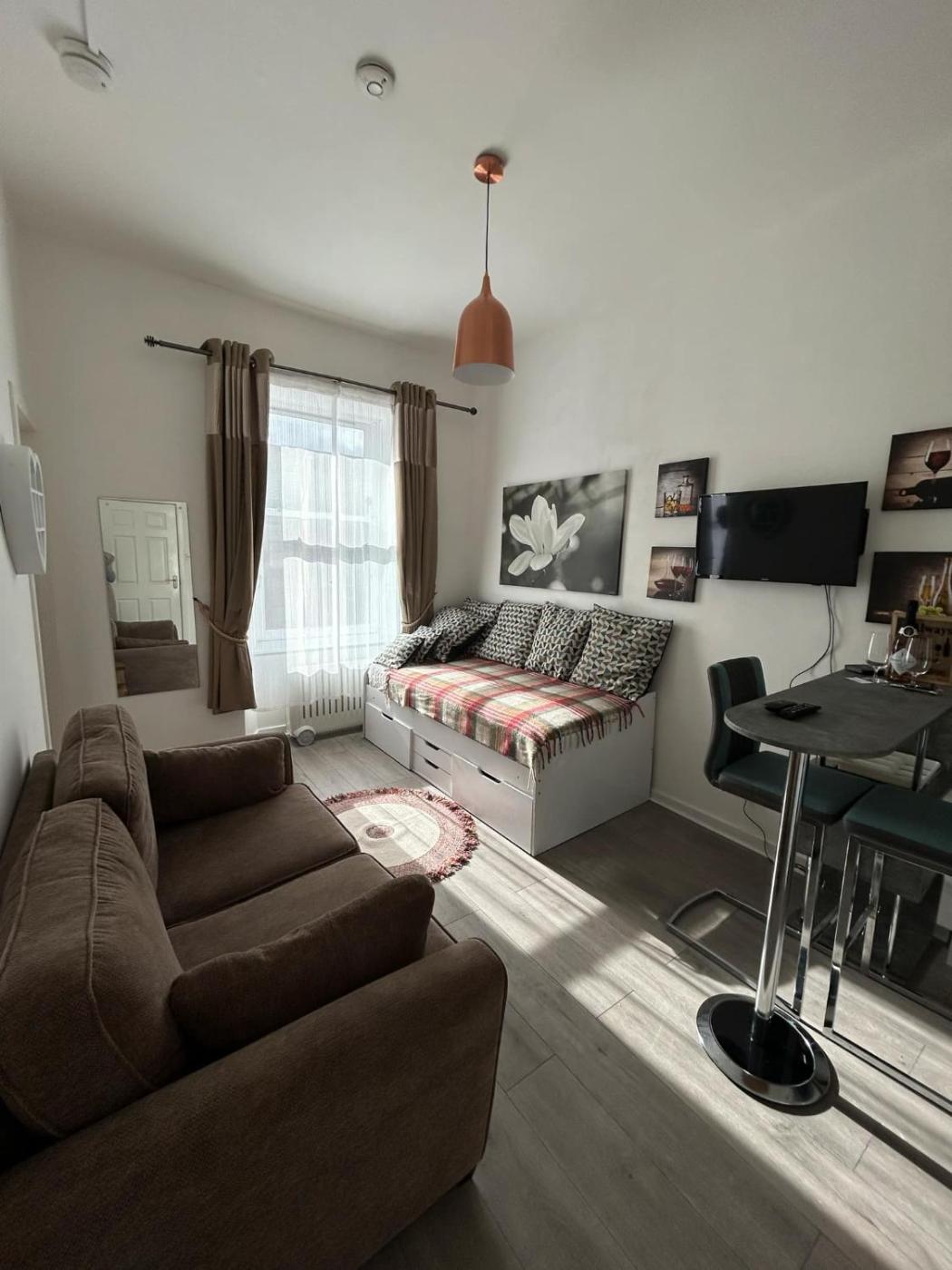 One-Bedroom Apartment. This apartment features 1 living room, 1 separate bedroom and 1 bathroom with a walk-in shower and free toiletries. In the fully equipped kitchen, guests will find a refrigerator, an oven, a microwave and a toaster. The apartment features a TV, a washing machine, an electric kettle, a sofa as well as city views. The unit has 2 beds.