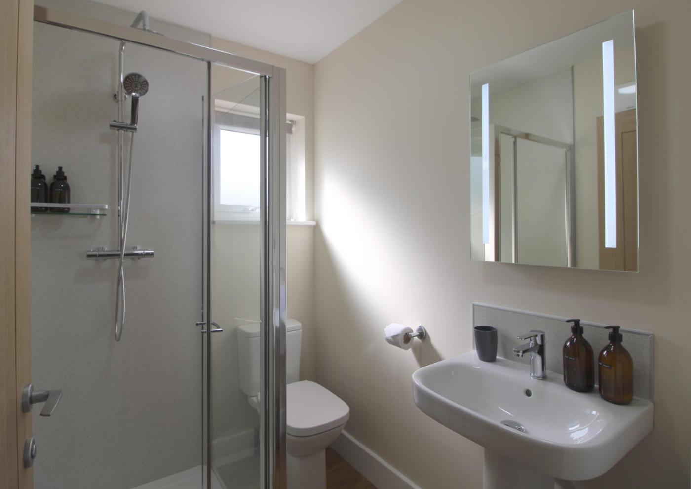 Two-Bedroom House. Boasting a private entrance, this holiday home includes 1 living room, 2 separate bedrooms and 3 bathrooms with a walk-in shower and a hairdryer. Meals can be prepared in the well-fitted kitchen, which is fitted with a stovetop, a refrigerator, a dishwasher and kitchenware. The holiday home has carpeted floors, a seating area with a flat-screen TV, a dining area, a wardrobe as well as garden views. The unit has 3 beds.