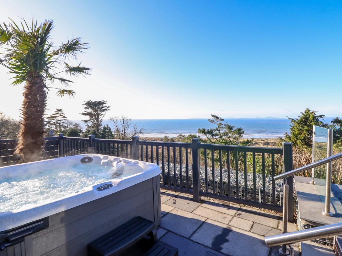 Holiday Home. This holiday home offers a hot tub. This spacious holiday home comprises 4 bedrooms, a seating area with a sofa and 3 bathrooms with a walk-in shower. The well-equipped kitchen features a stovetop, a refrigerator, a dishwasher and an oven. The holiday home provides a washing machine, a coffee machine, a dining area, a TV, as well as sea views. The unit offers 5 beds.