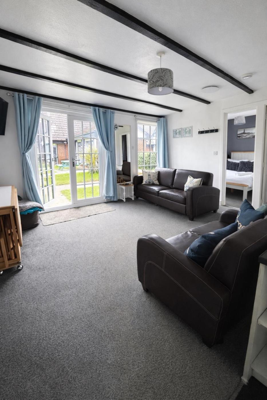 The spacious holiday home with a patio and garden views features 2 bedrooms, a living room, a flat-screen TV, an equipped kitchen with an oven and a microwave, and 1 bathroom with a walk-in shower. Towels and bed linen are featured in the holiday home. The property has an outdoor dining area.