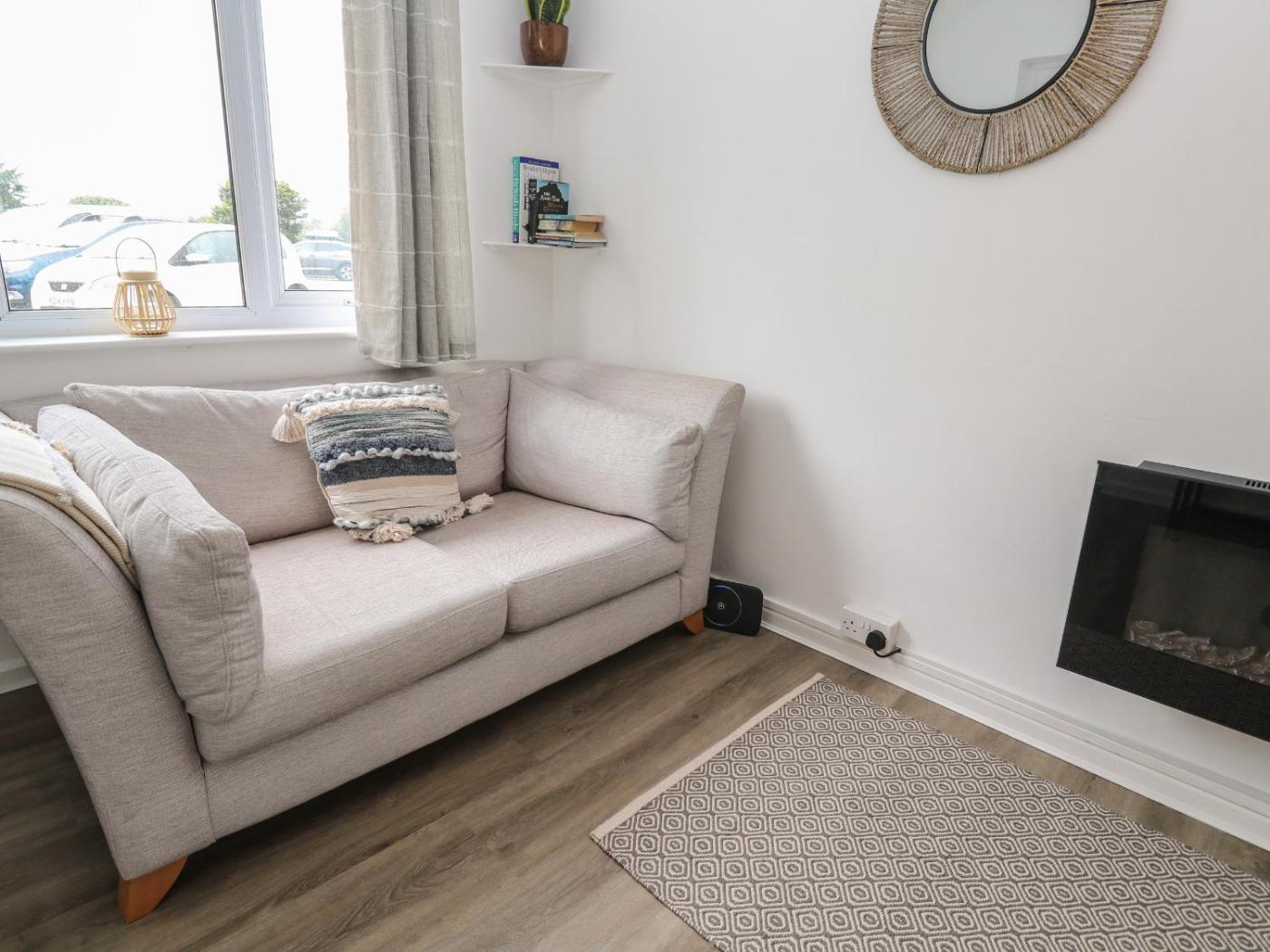 Holiday Home. The fireplace is the standout feature of this holiday home. This holiday home features 1 bedroom, a seating area with a sofa and 1 bathroom with a walk-in shower. Guests can make meals in the kitchen that features a stovetop, a refrigerator, an oven and a microwave. The holiday home features a dining area, a wardrobe, an electric kettle, heating and a TV. The unit has 1 bed.