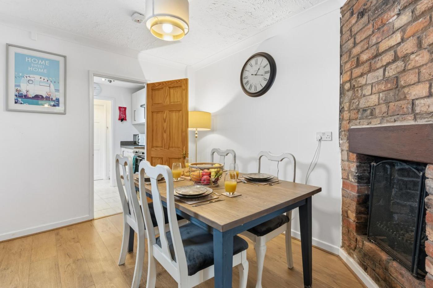 The 2-bedroom holiday home features a living room with a flat-screen TV with streaming services, a fully equipped kitchen with an oven and a microwave, and 1 bathroom with a hair dryer. Towels and bed linen are available in the holiday home. There is also a seating area and a fireplace.