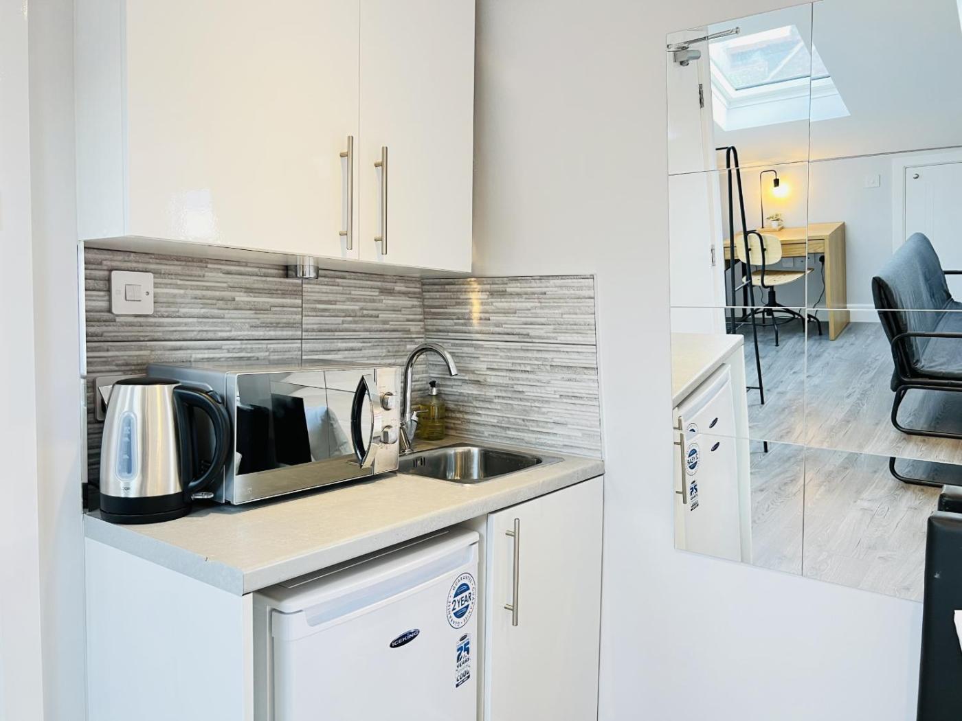 Deluxe Studio. Providing free toiletries, this studio includes a private bathroom with a shower and a hairdryer. Guests can make meals in the kitchenette that is equipped with a refrigerator, kitchenware, a microwave and an electric kettle. The studio provides a washing machine, a private entrance, soundproof walls, a flat-screen TV with streaming services, as well as city views. The unit offers 2 beds.