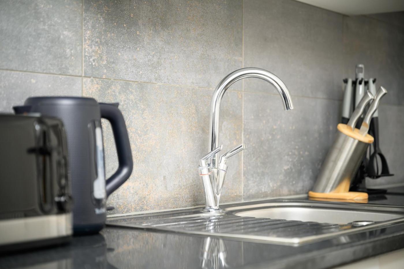 Deluxe Studio. The spacious studio offers a washing machine, a private entrance, as well as a private bathroom featuring a walk-in shower and a hairdryer. In the kitchen, guests will find a stovetop, a refrigerator, kitchenware and an oven. The studio features parquet floors, a seating area with a flat-screen TV, a dining area, a wardrobe, as well as an electric kettle. The unit offers 2 beds. ;
