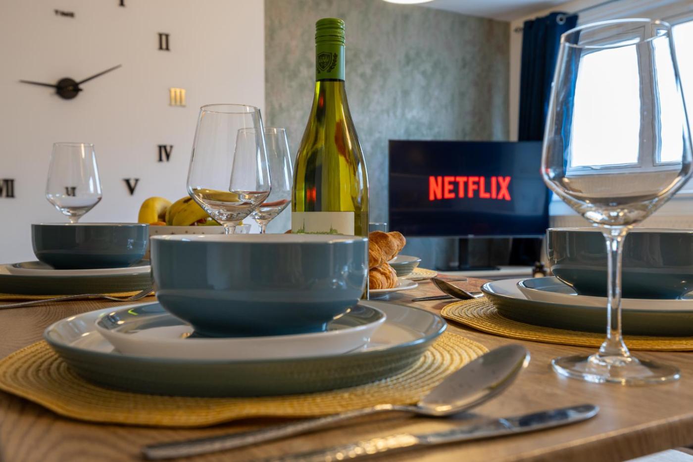 One-Bedroom Premium Apartment. This spacious apartment comes with 1 living room, 1 separate bedroom and 1 bathroom with a bath and free toiletries. In the kitchen, guests will find a stovetop, a refrigerator, kitchenware and an oven. The apartment has parquet floors, a seating area with a flat-screen TV with streaming services, a washing machine, a private entrance, as well as a dining area. The unit has 3 beds.