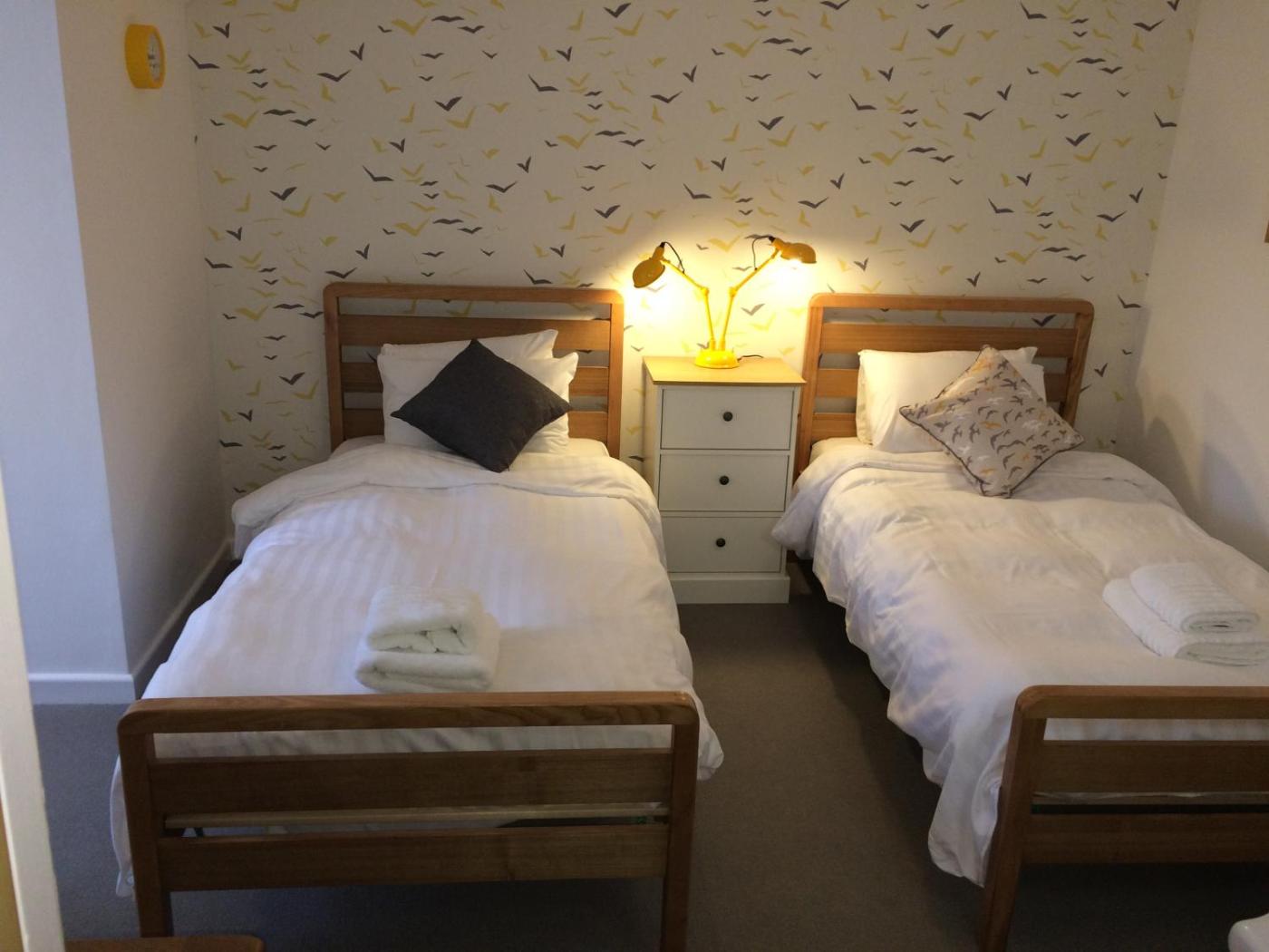 Twin Room. This room has a flat-screen TV with DVD player and tea and coffee making facilities. ;