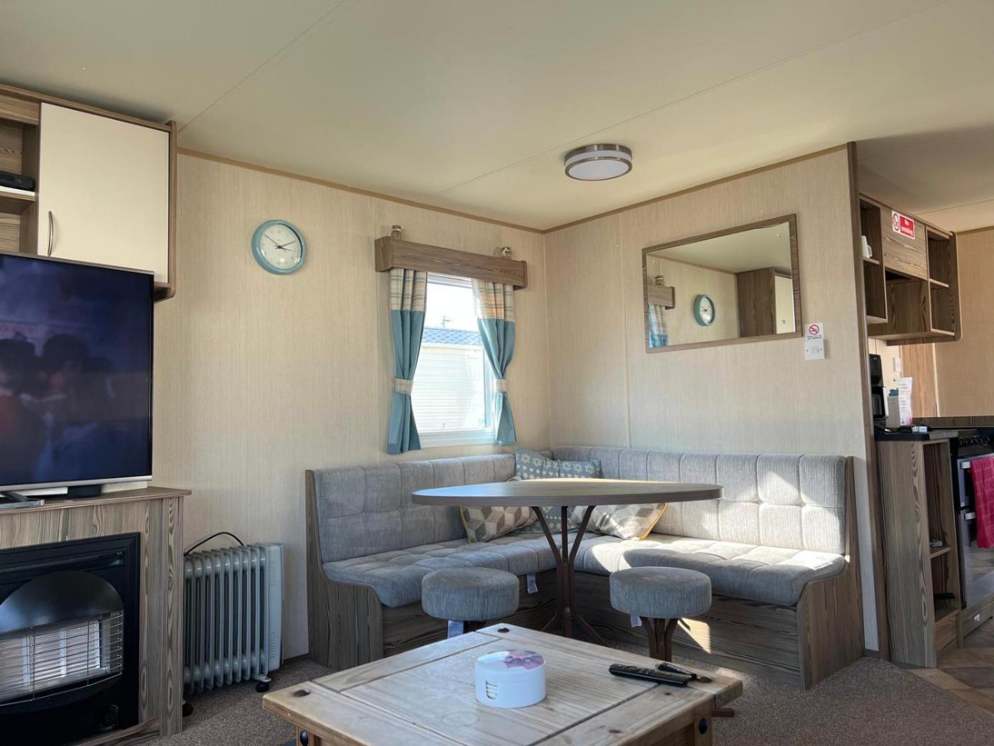 Caravan. The fireplace is a top feature of this mobile home. This mobile home comes with 1 living room, 3 separate bedrooms and 2 bathrooms with a shower and a hairdryer. In the kitchen, guests will find a stovetop, a refrigerator, kitchenware and an oven. Boasting an outdoor dining area, this mobile home also features a washing machine, a tea and coffee maker and a flat-screen TV. The unit has 6 beds.