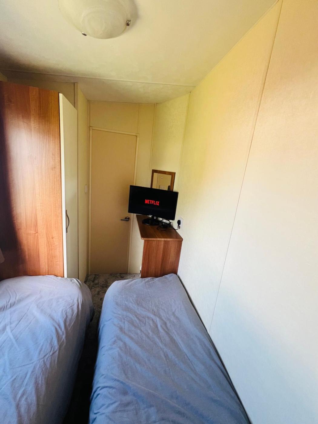 Caravan. This mobile home comes with 1 living room, 3 separate bedrooms and 1 bathroom with a shower and a hairdryer. The mobile home features a flat-screen TV, a tea and coffee maker, a dining area, a wardrobe as well as a quiet street view. The unit has 6 beds.