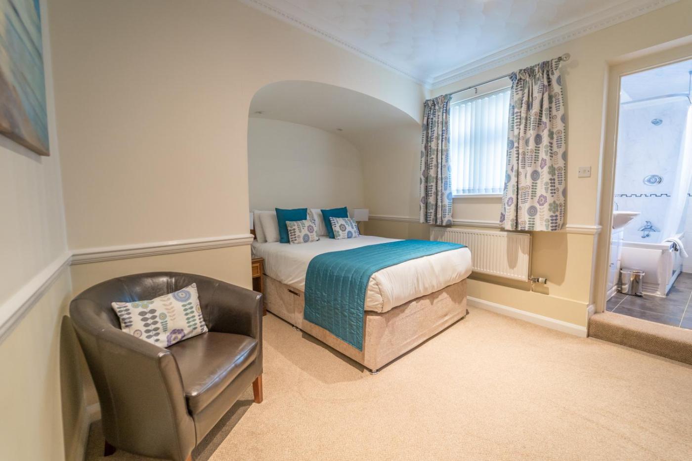 Non Sea View Double - 2 Night Rate. Each room benefits from its own TV and an en suite bathroom. This room includes free WiFi access.