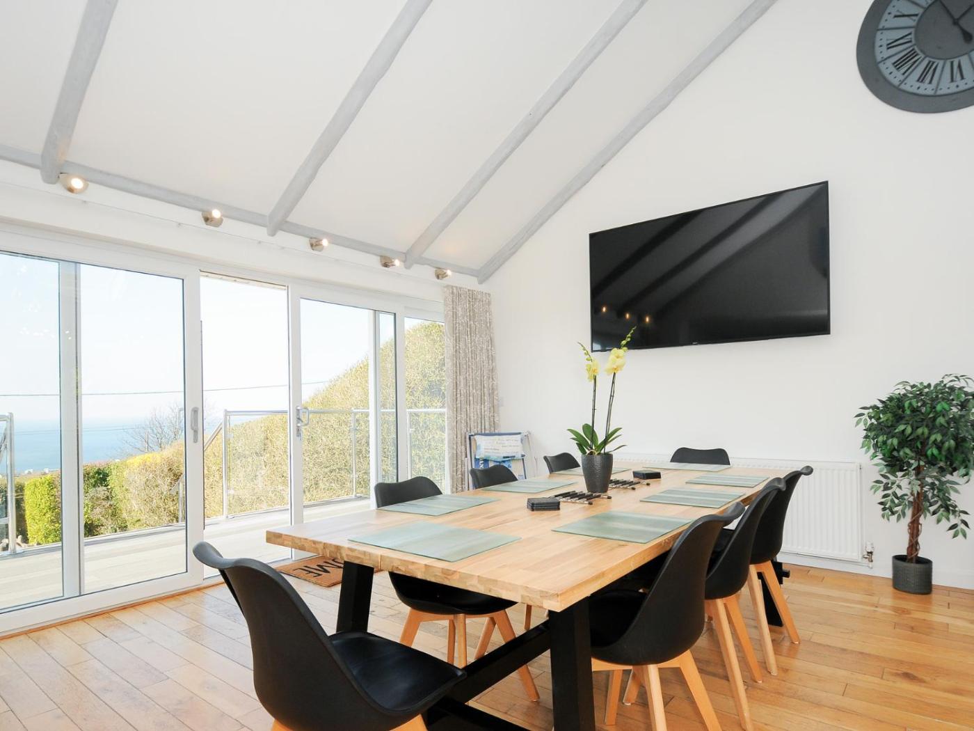 Holiday Home. This spacious holiday home comes with 4 bedrooms, a seating area with a sofa and 3 bathrooms with a walk-in shower. The fully equipped kitchen has a stovetop, a refrigerator, a dishwasher and an oven. The holiday home features a TV, a washing machine, a coffee machine, a dining area as well as sea views. The unit has 5 beds.