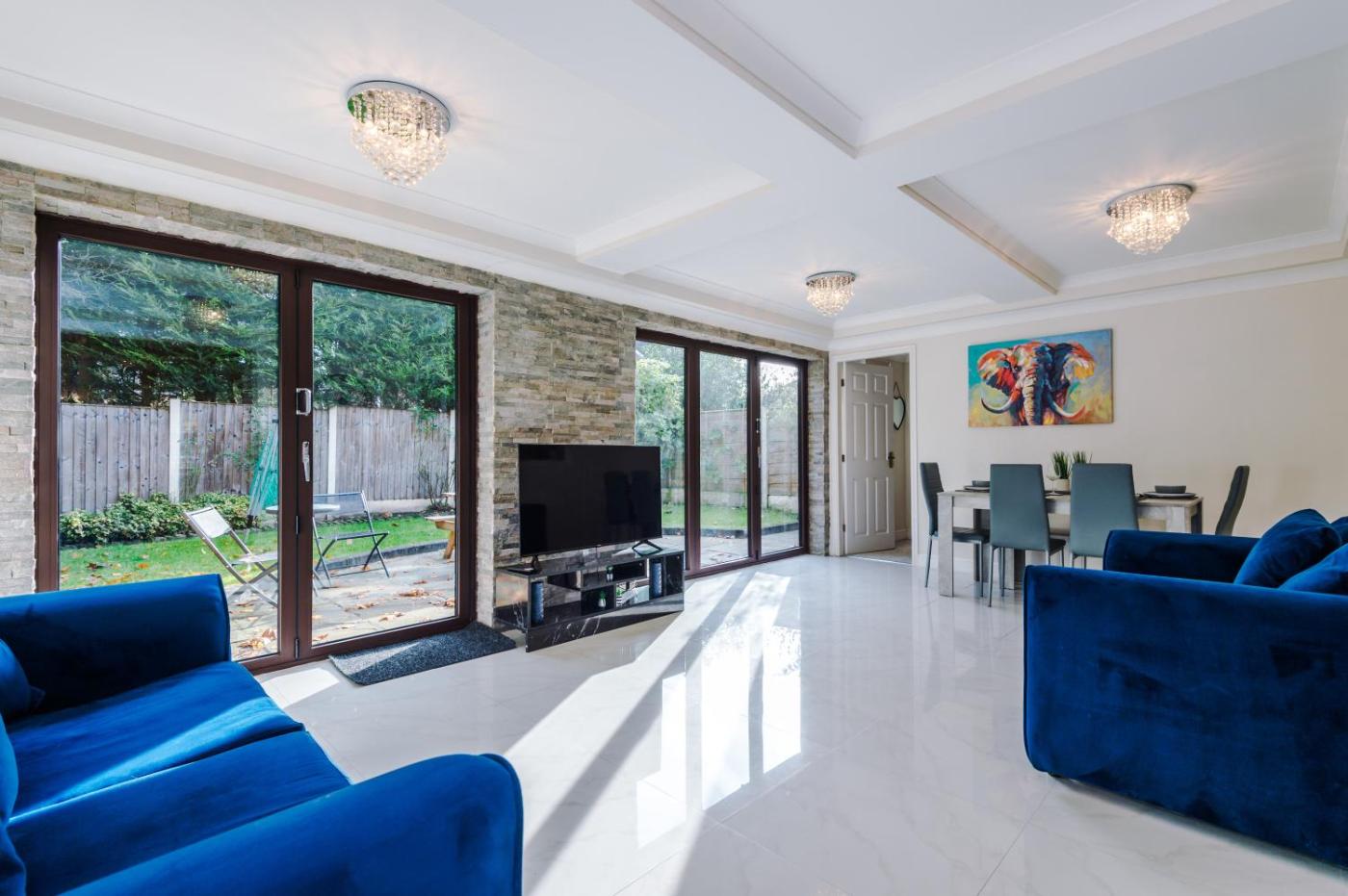 Five-Bedroom House. In the kitchen, guests will find a stovetop, a refrigerator, a dishwasher and an oven. The spacious holiday home offers a flat-screen TV with cable channels, a washing machine, a private entrance, a tea and coffee maker as well as garden views. The unit has 5 beds.