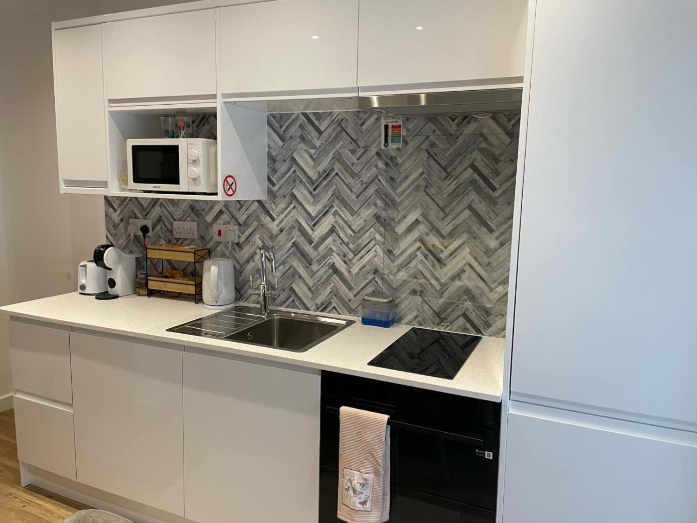 One-Bedroom Apartment. Boasting a private entrance, this air-conditioned apartment comes with a kitchen, 1 bedroom and 1 bathroom with a shower and a hairdryer. The well-fitted kitchen has a stovetop, an oven, a microwave and a tea and coffee maker. The apartment features a washing machine, a wardrobe, tumble dryer, as well as a flat-screen TV. The unit has 1 bed.